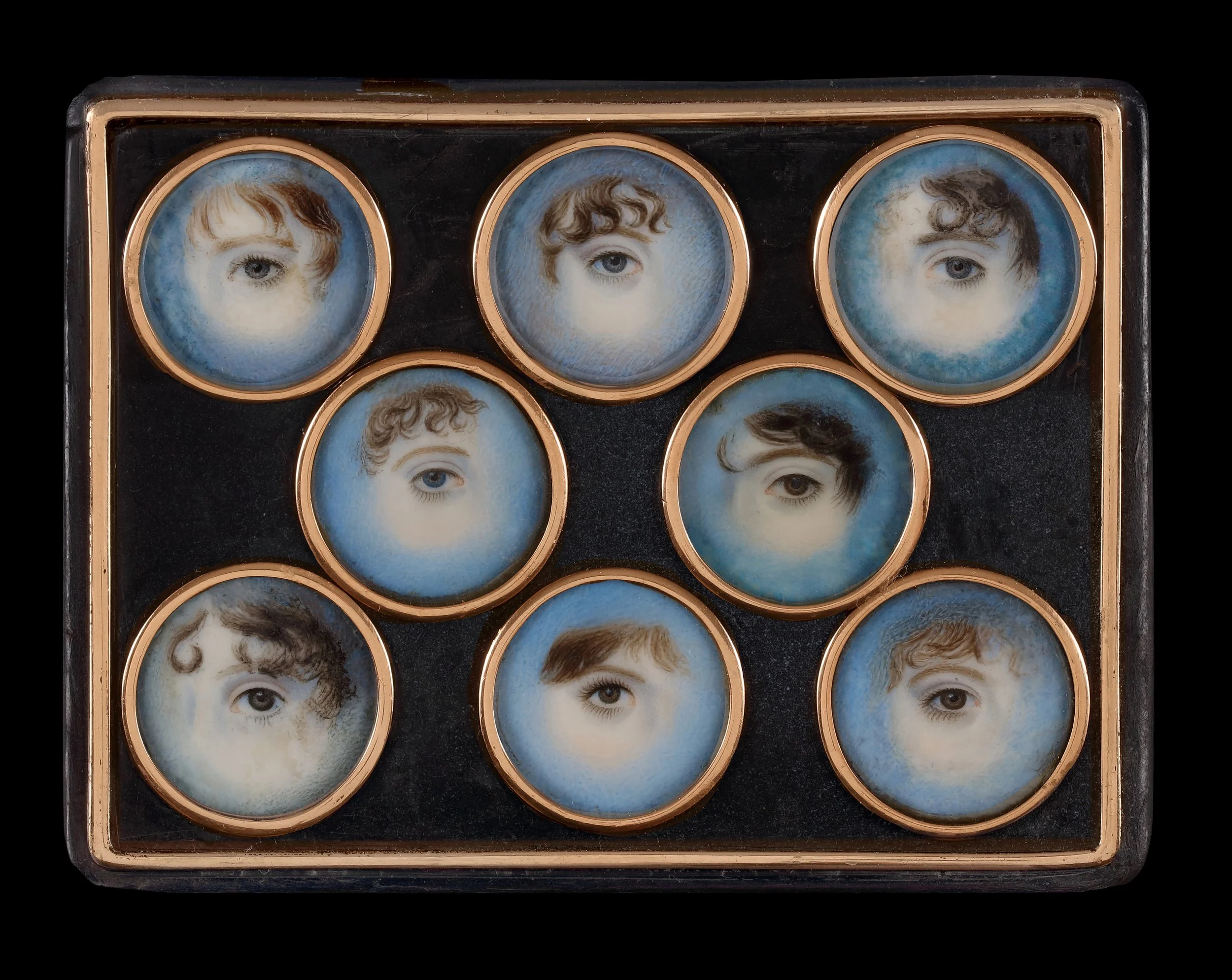 The Limner Company: English School (circa 1800-1820), Eight eye miniatures with blue and hazel eyes, watercolour on ivory (licence SJYTTZSU) set into a tortoiseshell box. Each eye 20 mm (0.75 in) diameter